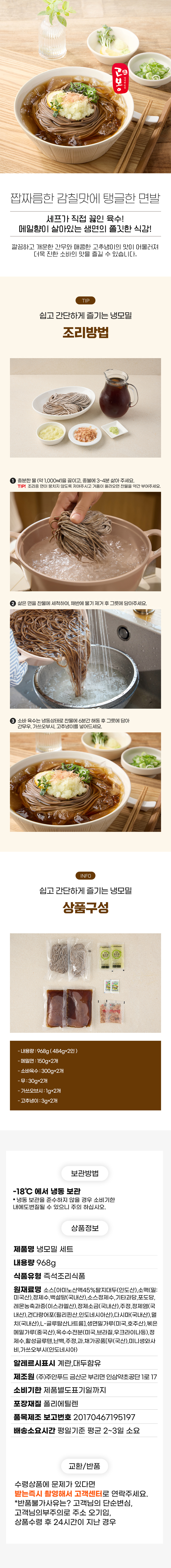 간편식품 냉모밀 간단정보 깔끔하고 개운한 간무와 매콤한 고추냉이의 맛이 어울러져 더욱 진한 소바의 맛 원재료 소스[아미노산액45% 탈지대두(인도산), 소맥(밀:미국산)] 무게 968g 보관방법 -18도 에서 냉동 보관 원산지 생면밀가루(미국,브라질,우크라이나 등) 온라인문의 상품상세설명 목록