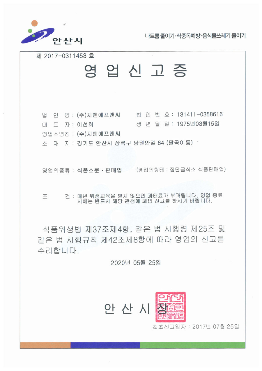 발전하는 (주)지엔에프앤씨가 될 수 있도록 약속 드리겠습니다.